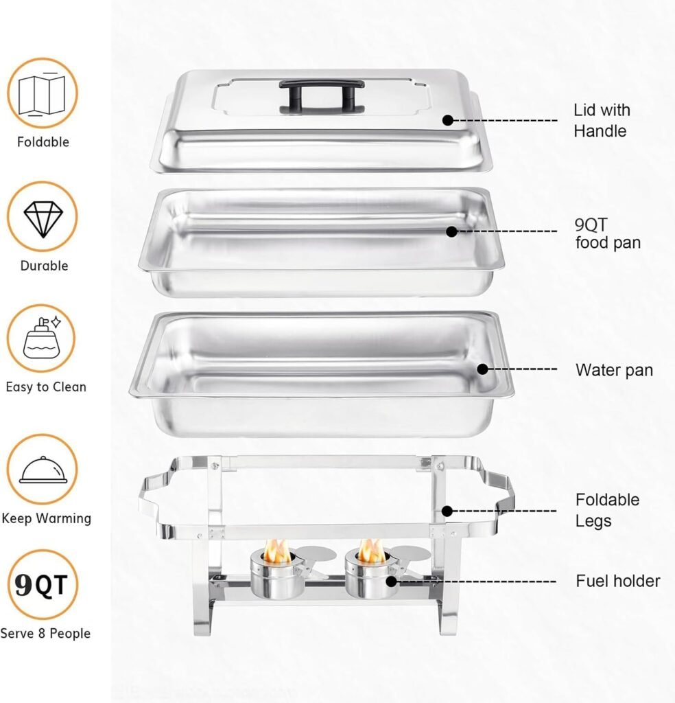 Chafing Dishes for Buffet 4 Pack, 9 Quart Stainless Steel Chafing Dish Buffet Set with Folding Frame, Food Warmers for Parties, Catering Supplies, Banquets, and Weddings