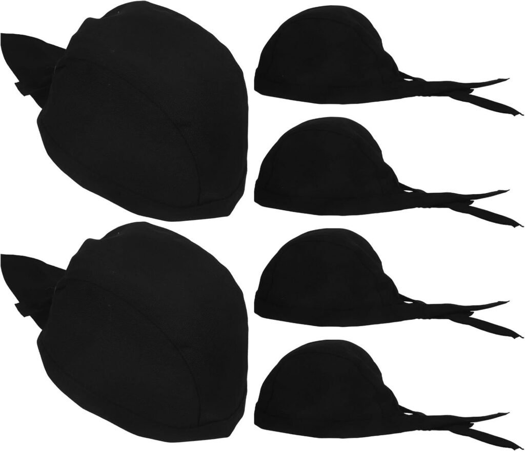 6Pcs Black Chef Hats for Men and Women Breathable Cotton Cooking Caps Adjustable Kitchen Chef Bandanas for Restaurant BBQ and Catering