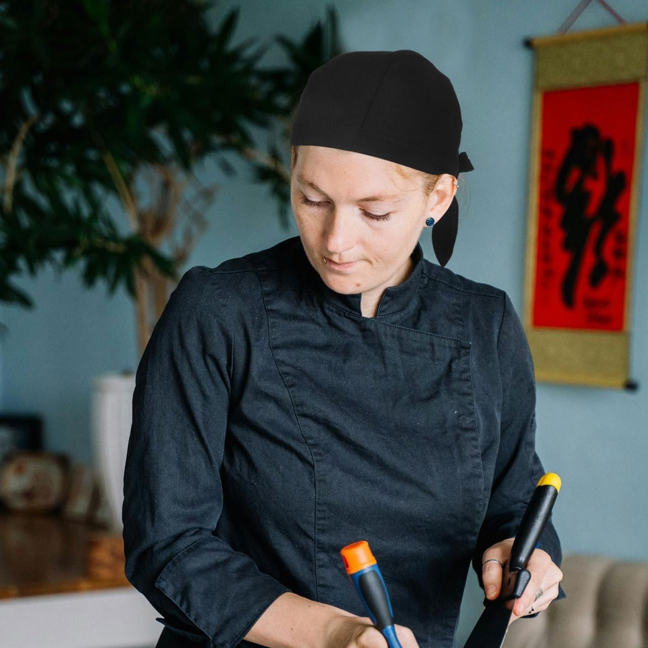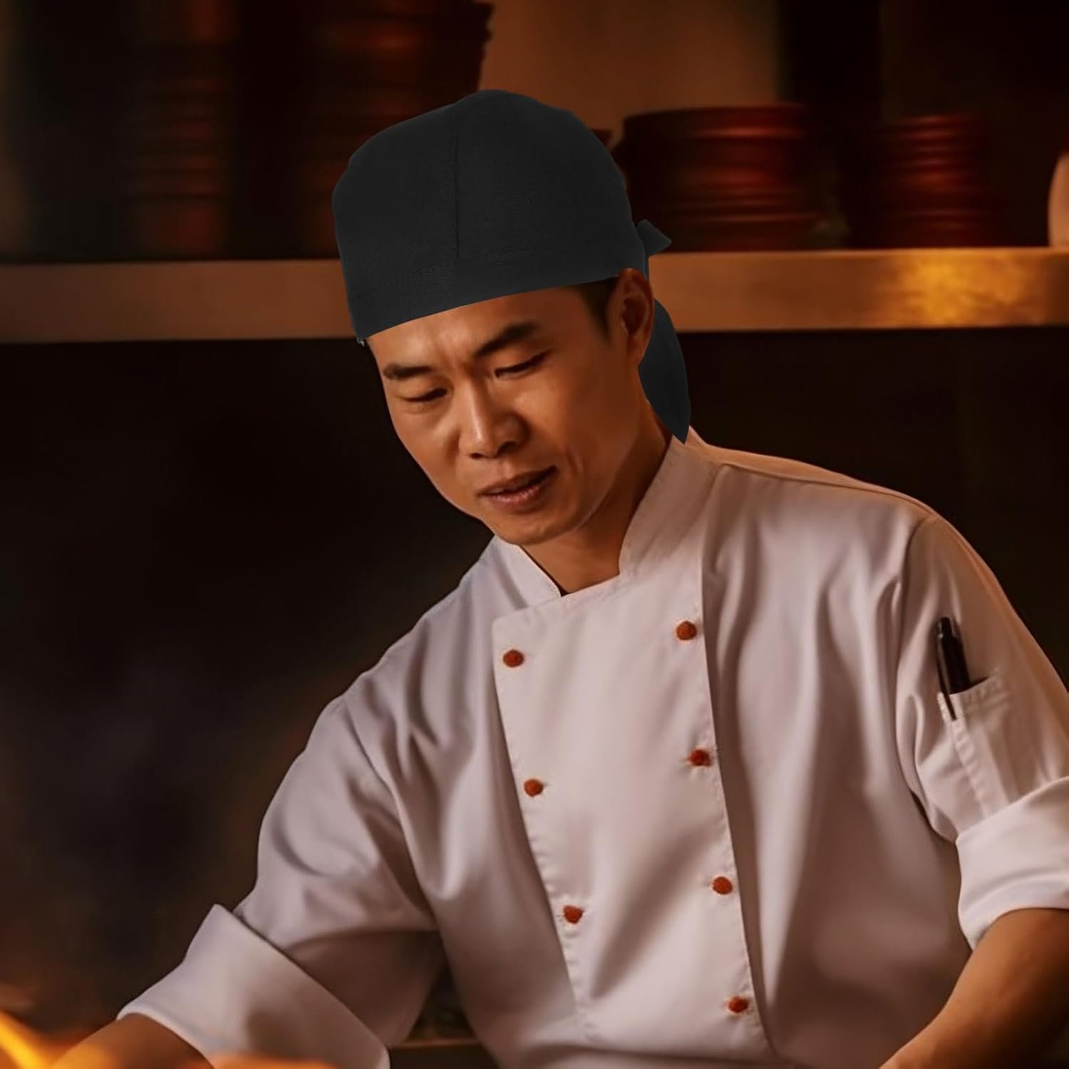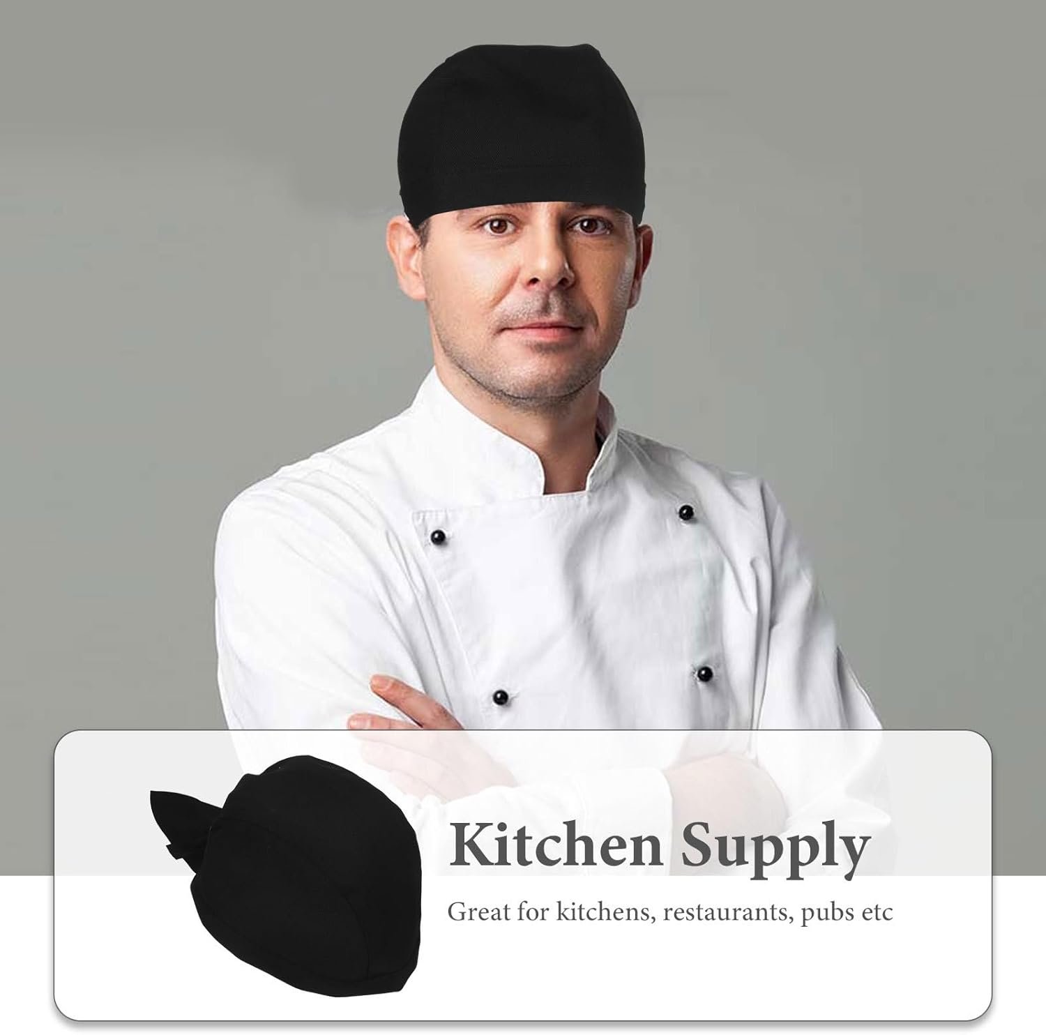 6Pcs Black Chef Hats for Men and Women Breathable Cotton Cooking Caps Adjustable Kitchen Chef Bandanas for Restaurant BBQ and Catering
