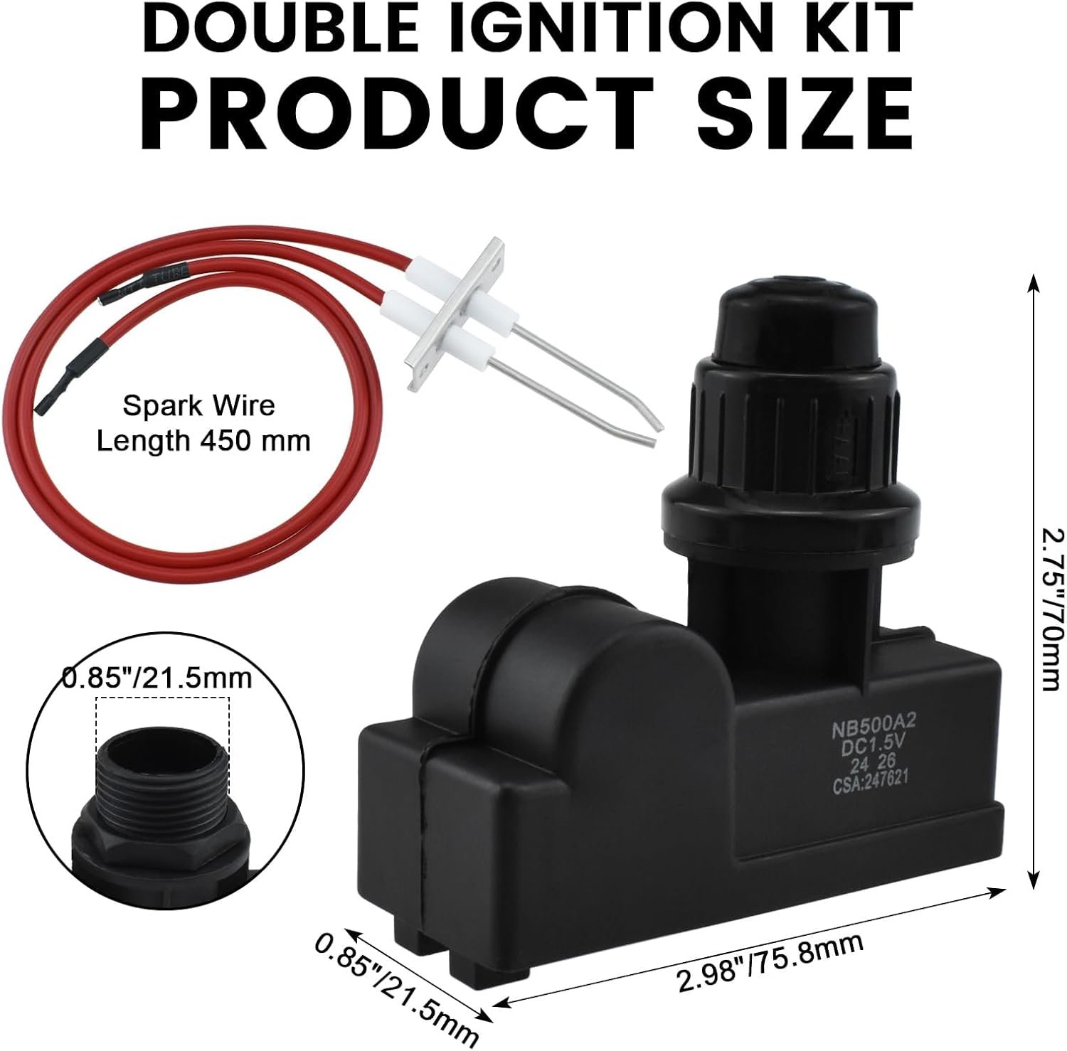 Easy to Use: Push button igniter kit is easy to install, easy to operate, just press the button, ignition is simpler and safer, one piece of two outlets igniter and double ignition spark. Sparking distance is 2-4 mm