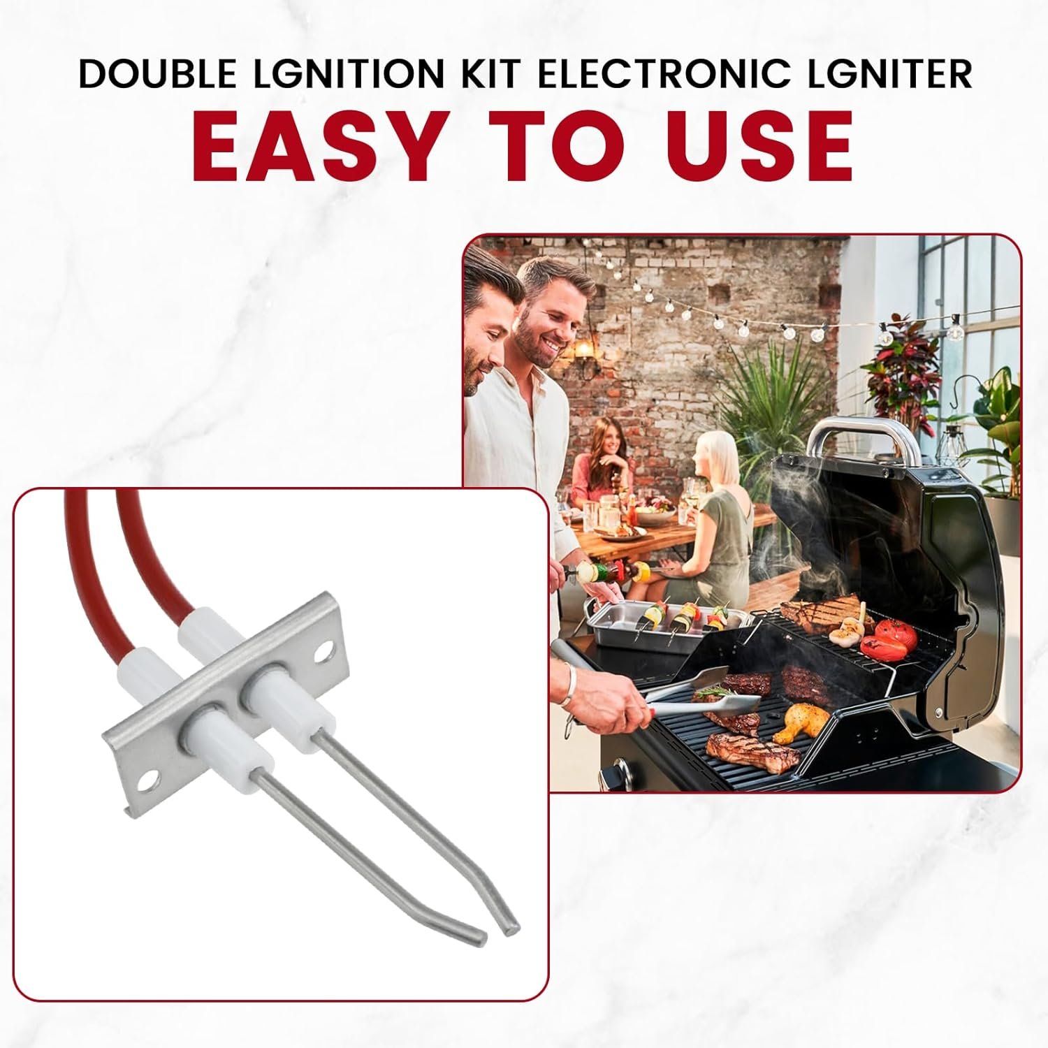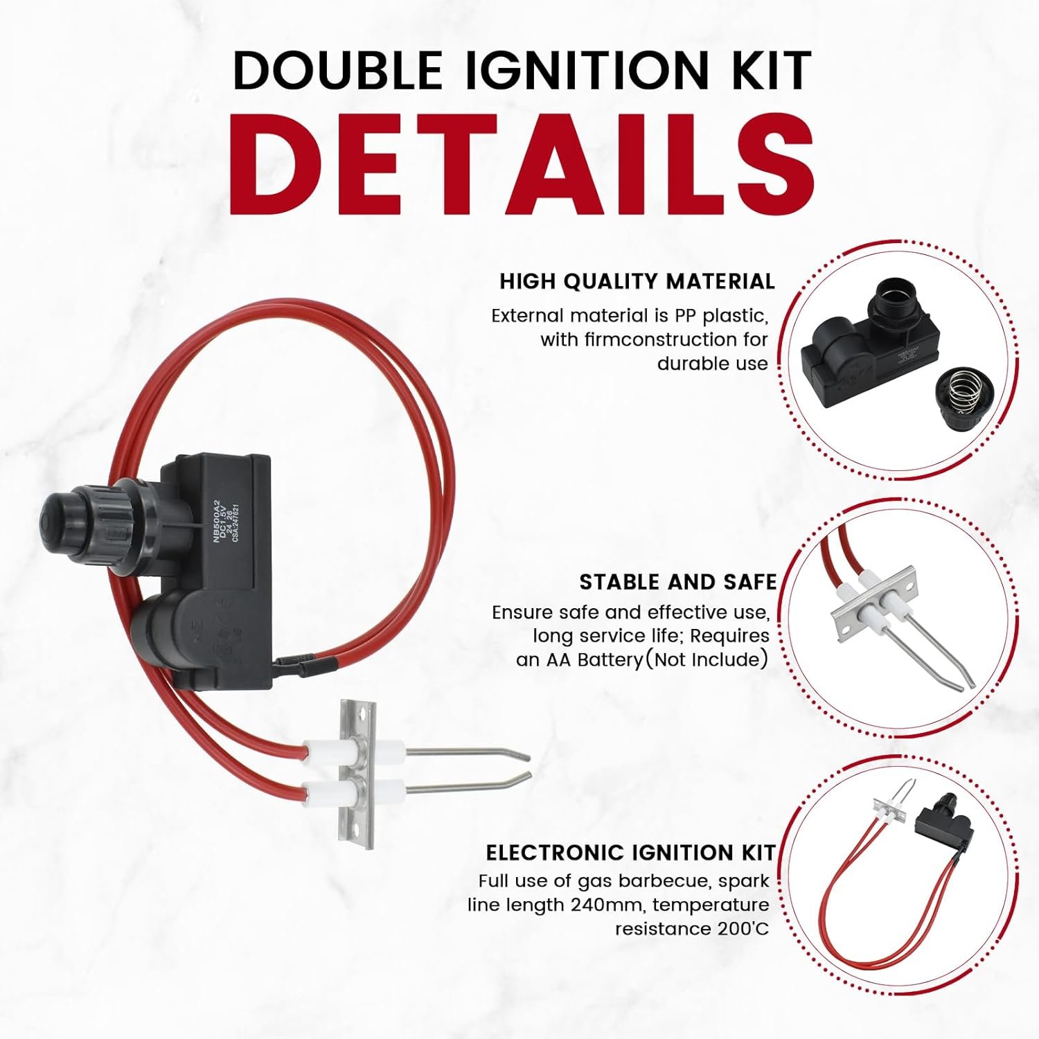 Aifeier ET Double Ignition Kit Electronic Igniter, Spark Generator Grill Igniter with Double Ignition Electrode, 450 mm High Spark Plug Wires for Grill, Heater and Catering Equipment Stove (1 Pack)