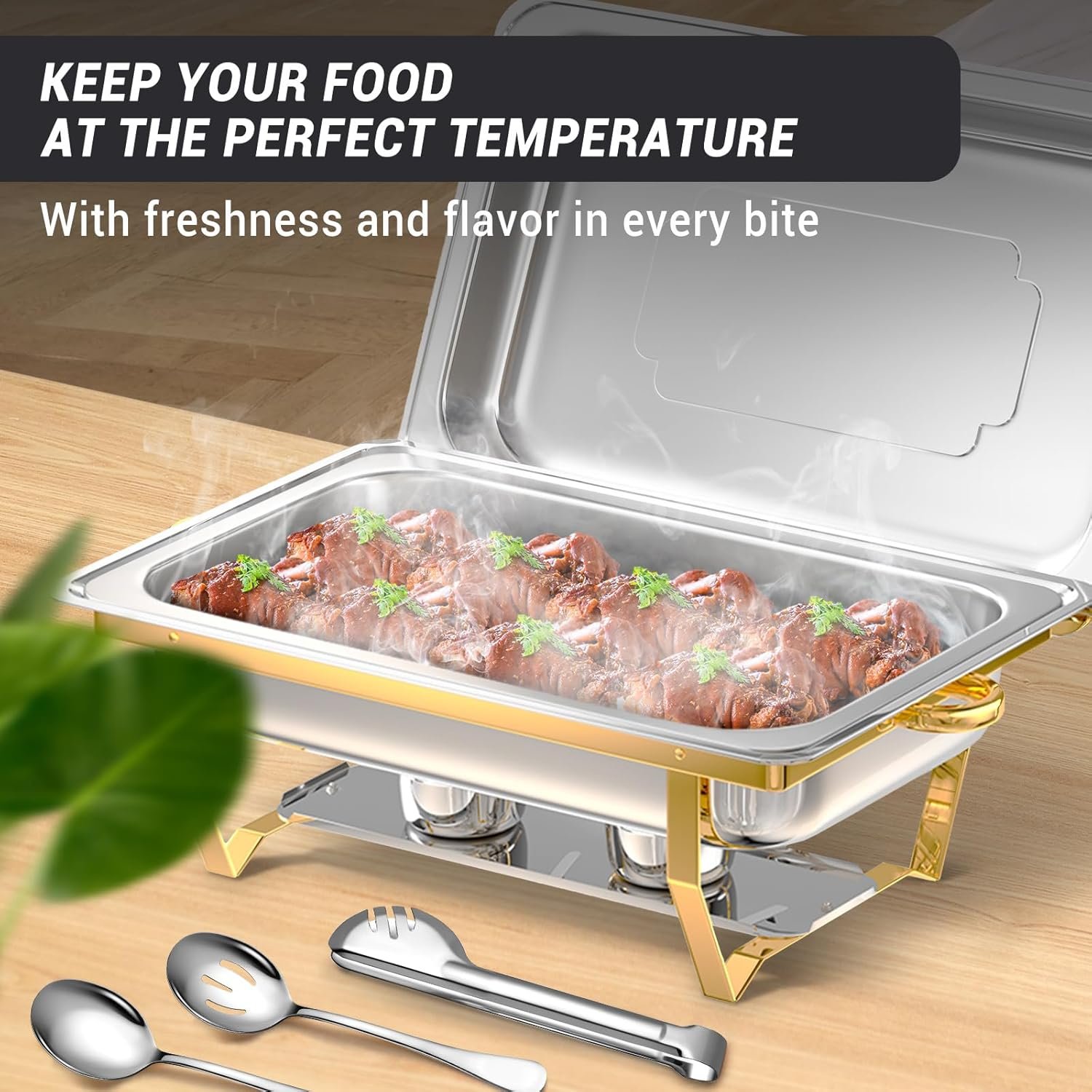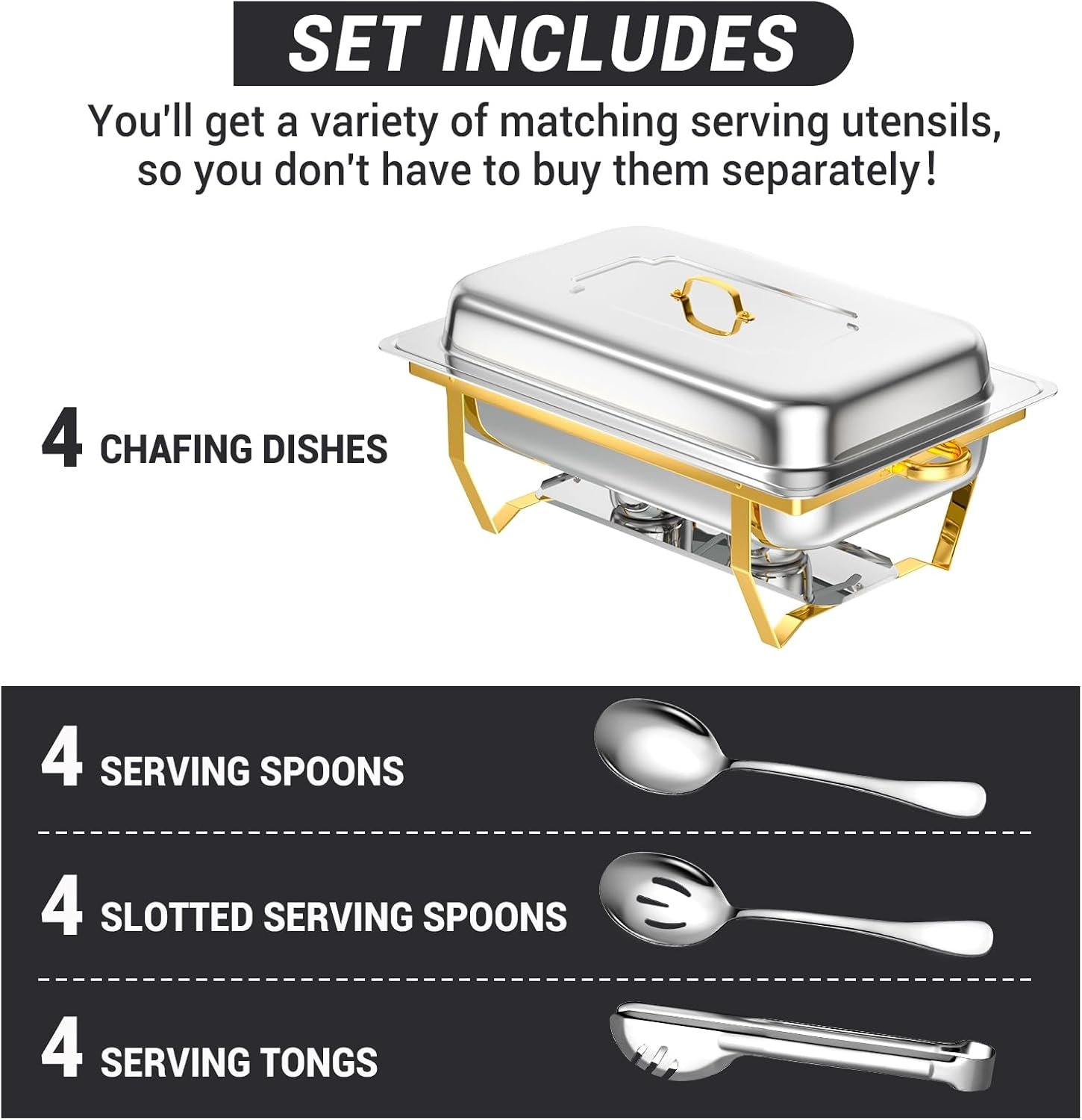 Chafing Dishes, 8 Qt High Grade Buffet Set, Full Size Pan, Rolled-Edge Design Food Warmers for Parties, Wedding, Birthday, Camping 4 Pack (Half Gold)