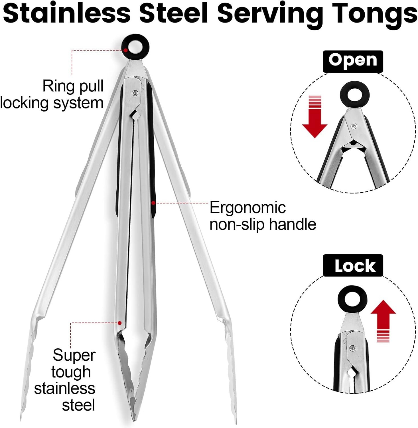 Sturdy and Reliable: these stainless steel tongs are mainly made of quality stainless steel, not easy to break or deform, reusable and safe to use, you can use them with confidence for a long time
