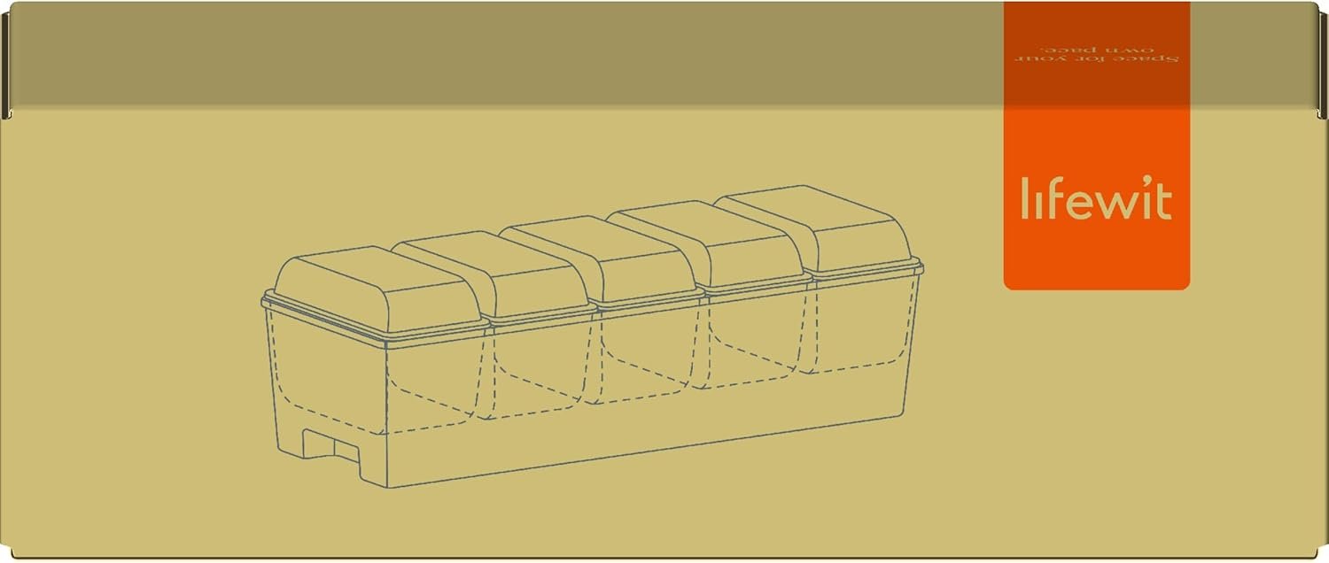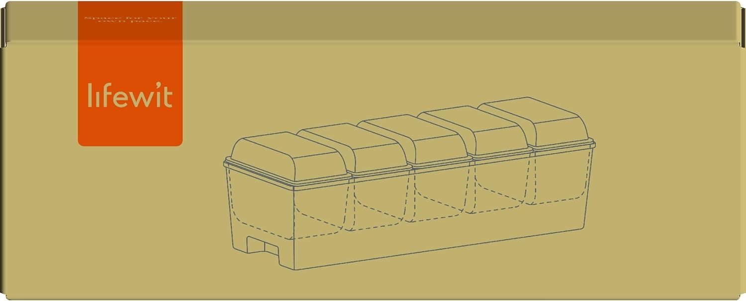Lifewit Ice Chilled Condiment Caddy with 5 Containers(2.5 cup), Condiment Server with Separate Lids, Serving Tray Platter with Removable Dishes for Bar Accessories, Fruit, Salad, Taco, Party Garnish