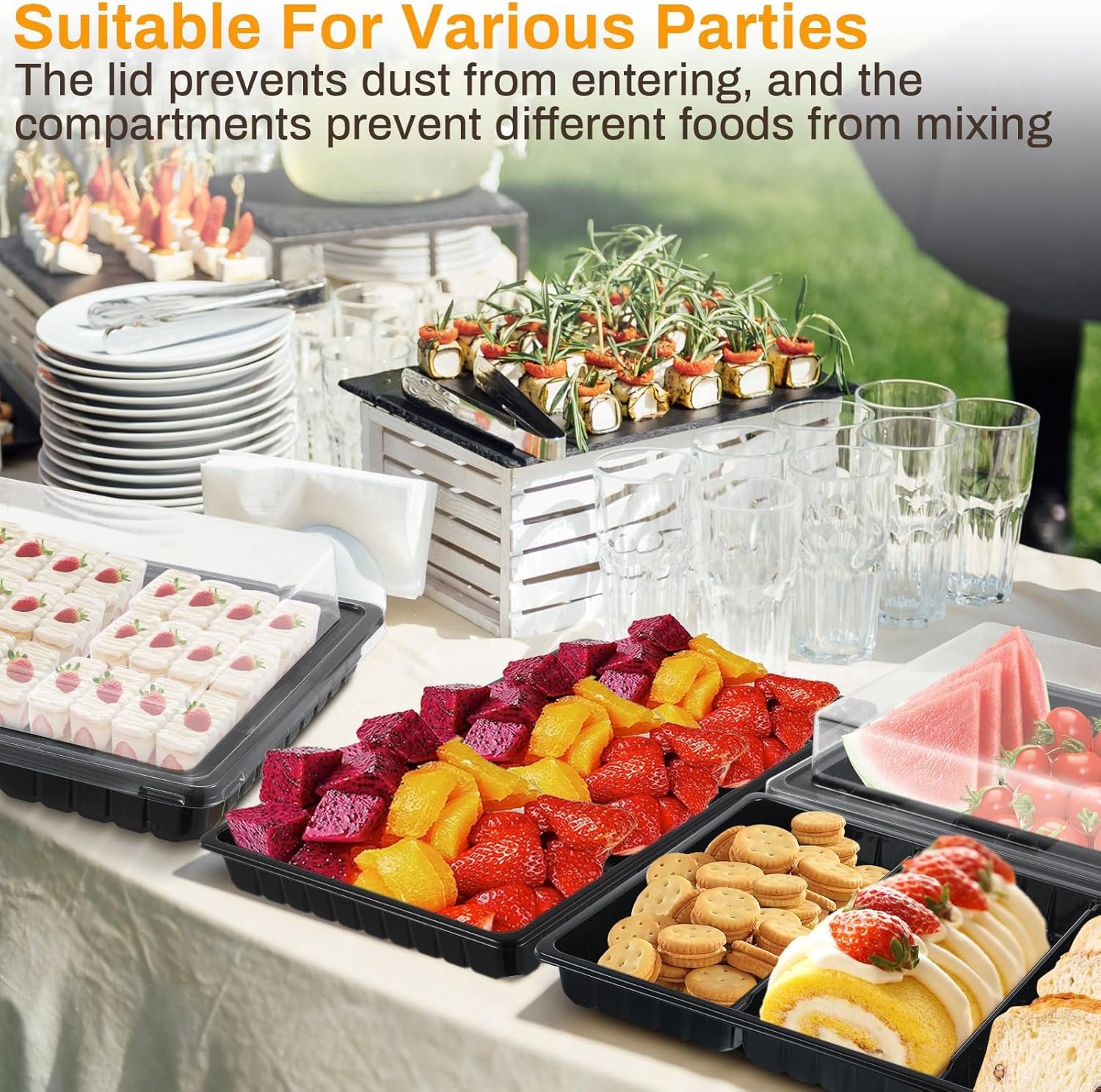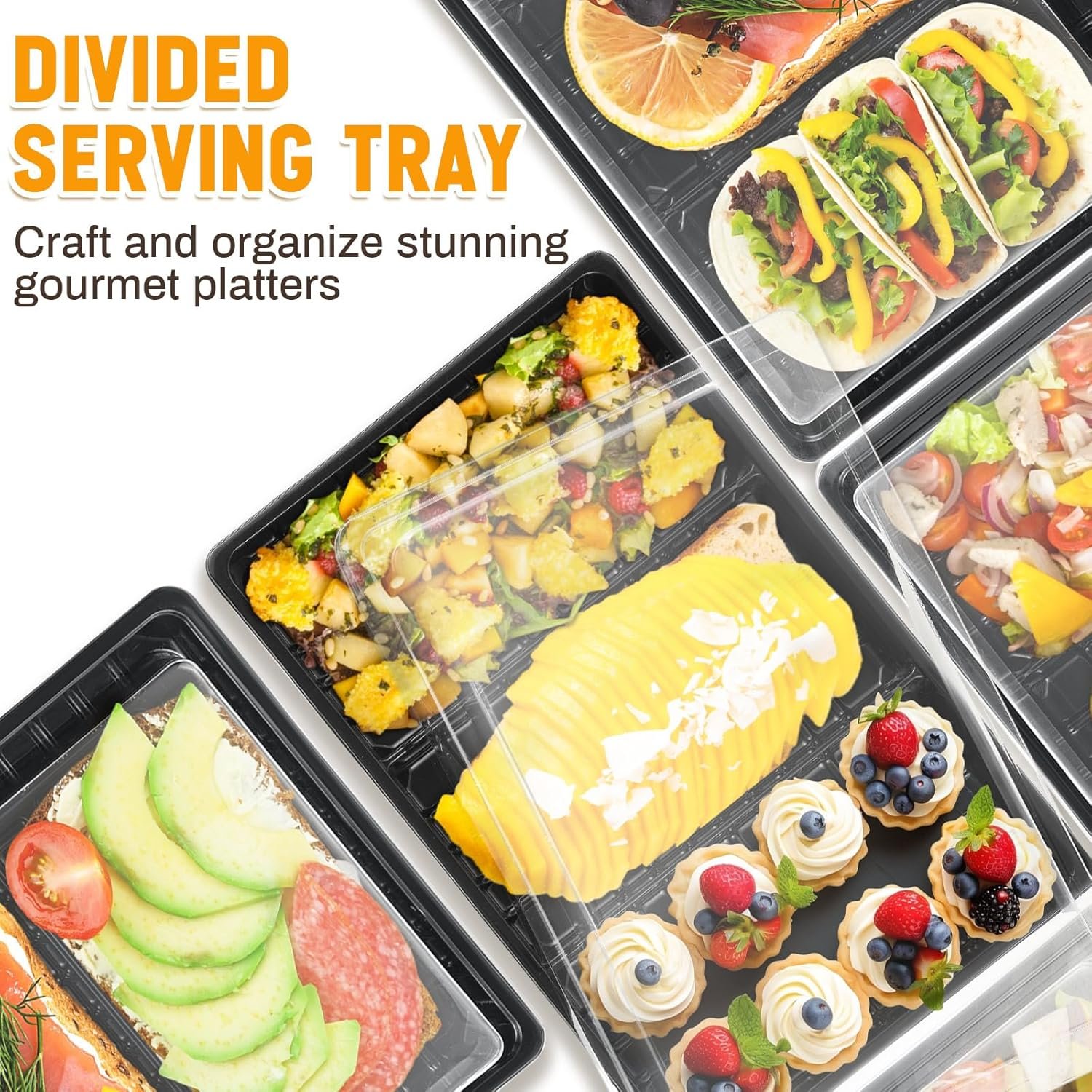 Divided Serving Trays: our catering trays with lids allow you to separate different food items for a more organized and visually pleasing display; No more squeezing different foods together, ensuring an aesthetically pleasing and efficient serving experience