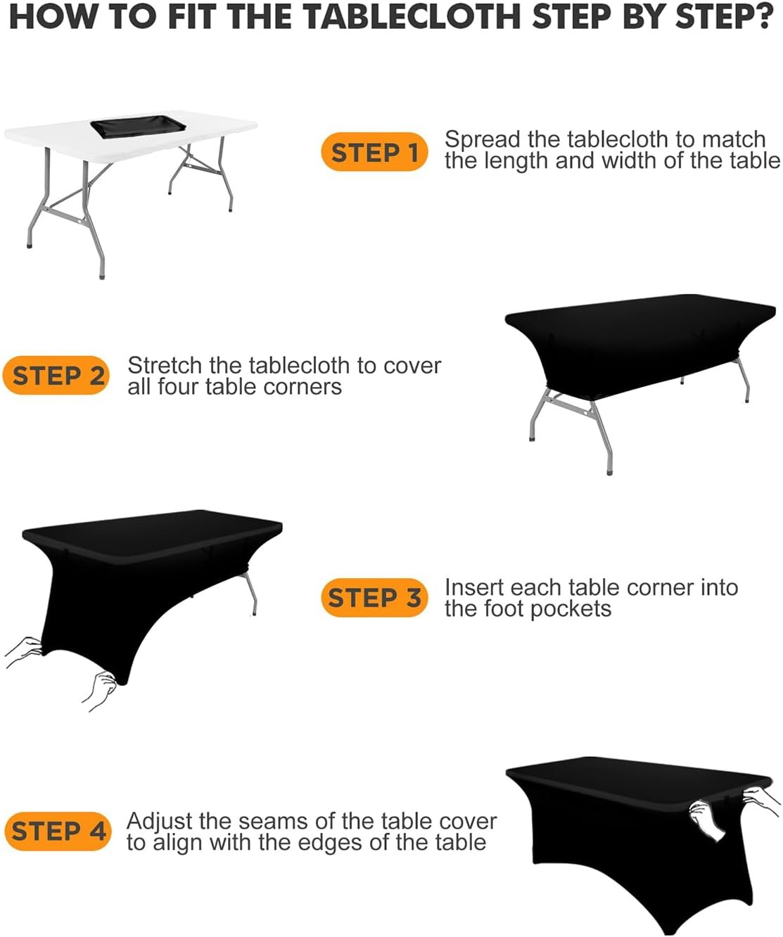 Perfectly Fits Banquet Folding Tables: The stretch tablecloth fully covers folding tables, protect your tables from dirt, dust, and scratches. The double-layer oxford fabric reinforce the leg pockets, securing the tablecloths in place and cover the table legs, ensuring every part of the table is covered. The table cloths stays firmly in place without slipping or blowing away. The 4 elastic leg pockets are designed to fit various types of table legs.