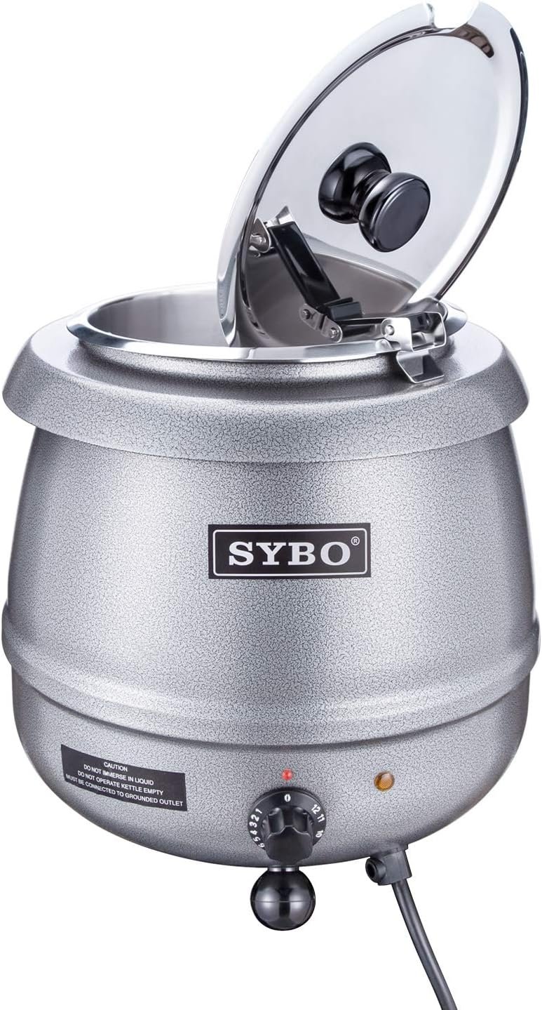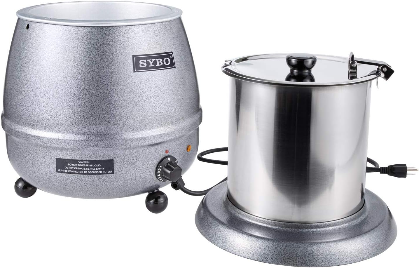 SYBO SB-6000-2G Commercial Grade Soup Kettle with Hinged Lid and Detachable Stainless Steel Insert Pot for Restaurant and Big Family, 10.5 Quarts, Silver