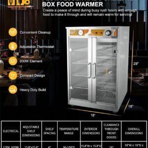 Sturdy and Durable Construction: Made of thickened 201 stainless steel, this hot box is strong and resistant to deformation. The convenient magnetic door ensures a tight seal to retain heat. The stable design allows easy transitions from countertop to floor without compromising security or stability.