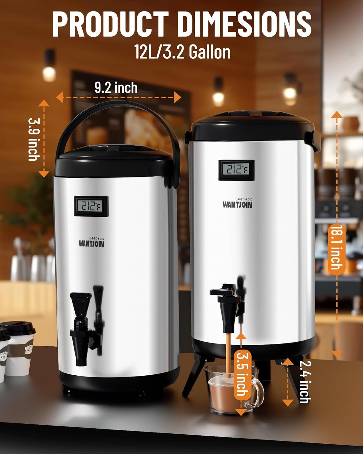 ✔【ALL-TIME TECHNICAL GUIDANCE】WantJoin stainless steel insulated beverage dispenser has covered all the necessary components. If you need operation or troubleshooting guidance, as well as one-stop consumables and accessories, and bar equipment problems, please feel free to contact us by email.